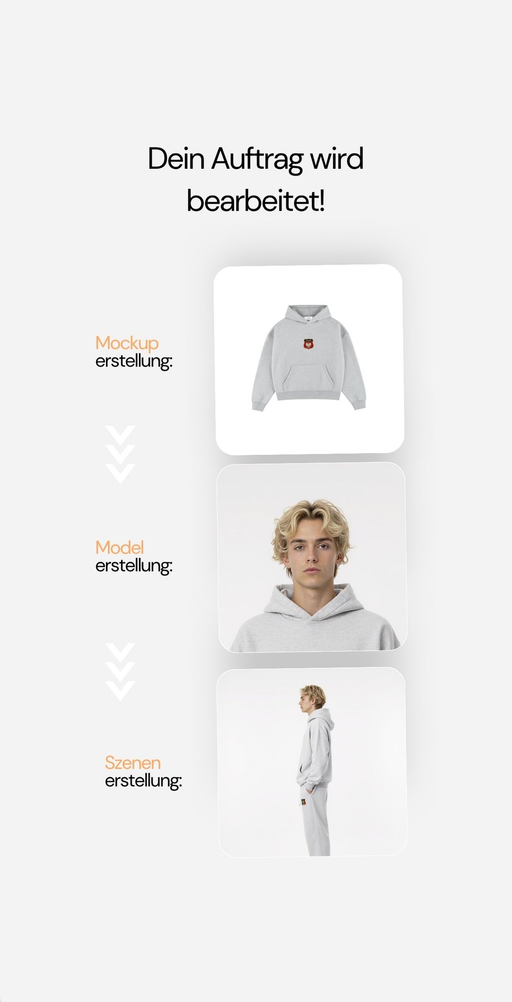 Du sendest uns dein Produkt oder Moodboard.In einem kurzen Gespräch klären wir Stil, Zielgruppe und Look & Feel.Danach beginnt unsere AI-Produktion – exakt nach deiner Vision.